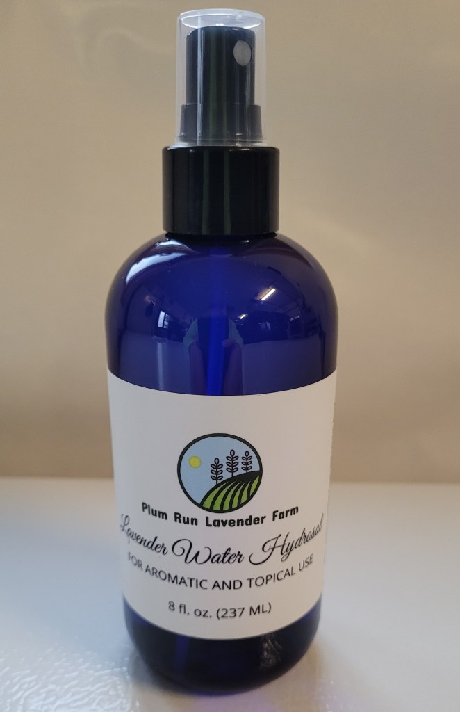 Produced by steam distilling fresh cut lavender with our farm sourced mountain spring water. This lavender hydrosol is the condensed water portion of the stream from the still, free of herbicides, pesticides or any other additives. Available in 8 oz bottles with a pump sprayer top.